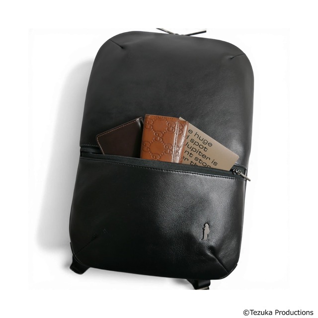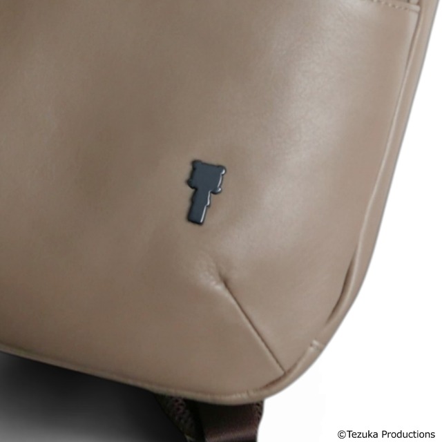 リュックには、ブラック・ジャックとピノコのシルエットを、さりげなくメタルパーツとして配置されている。外からは主張しすぎず、使う人だけが分かるディテールとして設計。バッグ全体の中で程よいアクセントとなり、シンプルなリュックの中に、さりげない存在感を加える。