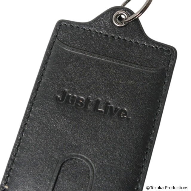 顔に刻まれた縫合線をモチーフに、パスケースにはジグザグのステッチが施されている。裏側には“Just Live.”のメッセージを刻印。生命を最優先とするブラック・ジャックの価値観を、TSOGなりの解釈としてメッセージで表現。