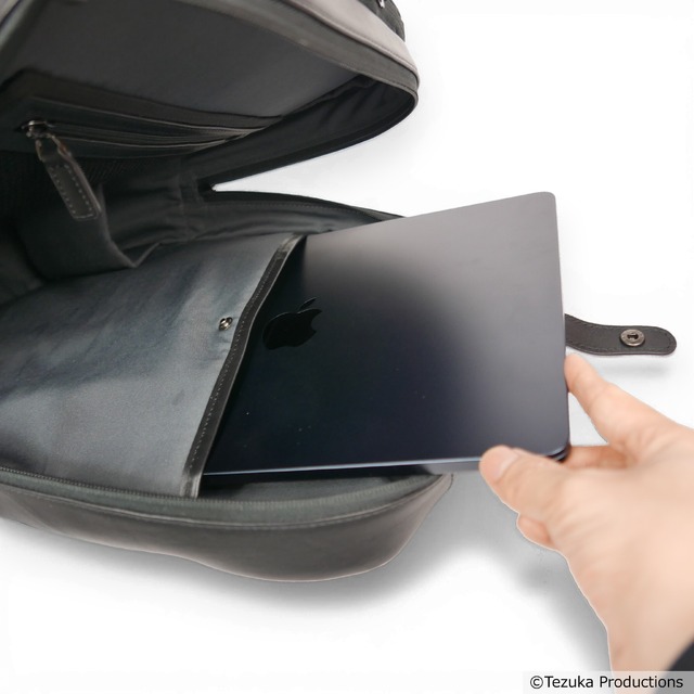 最大15インチのPCが収納可能なPCポケット。衝撃を吸収するクッション性のポケットが大切なPCを守る。