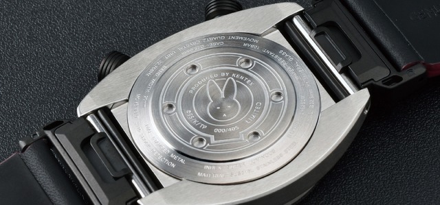 裏蓋には、アイリの胸元に身に着けているウサギのアクセサリーをモチーフとした刻印を配置。あわせて、ヨーコにちなんだ405本限定生産を示すシリアルナンバーを、1本ごとに異なる番号(001/0405~405/0405)で刻印している。